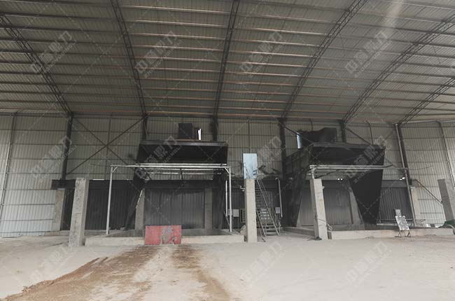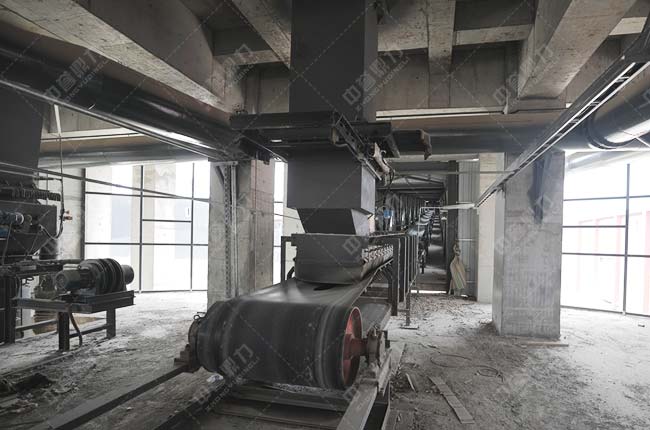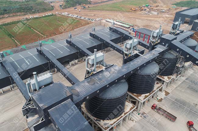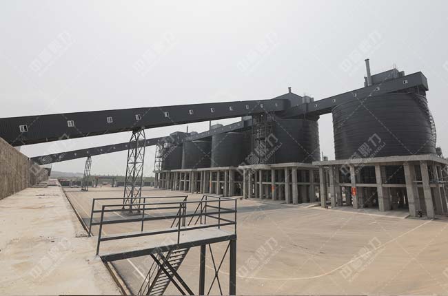 4、圓形儲料倉對面設有成品料緩沖庫,通過輸送機送至各自成品料平庫內,可實現淡季存料、旺季銷售,節省轉運費用,避免用料高峰期無料可尋。